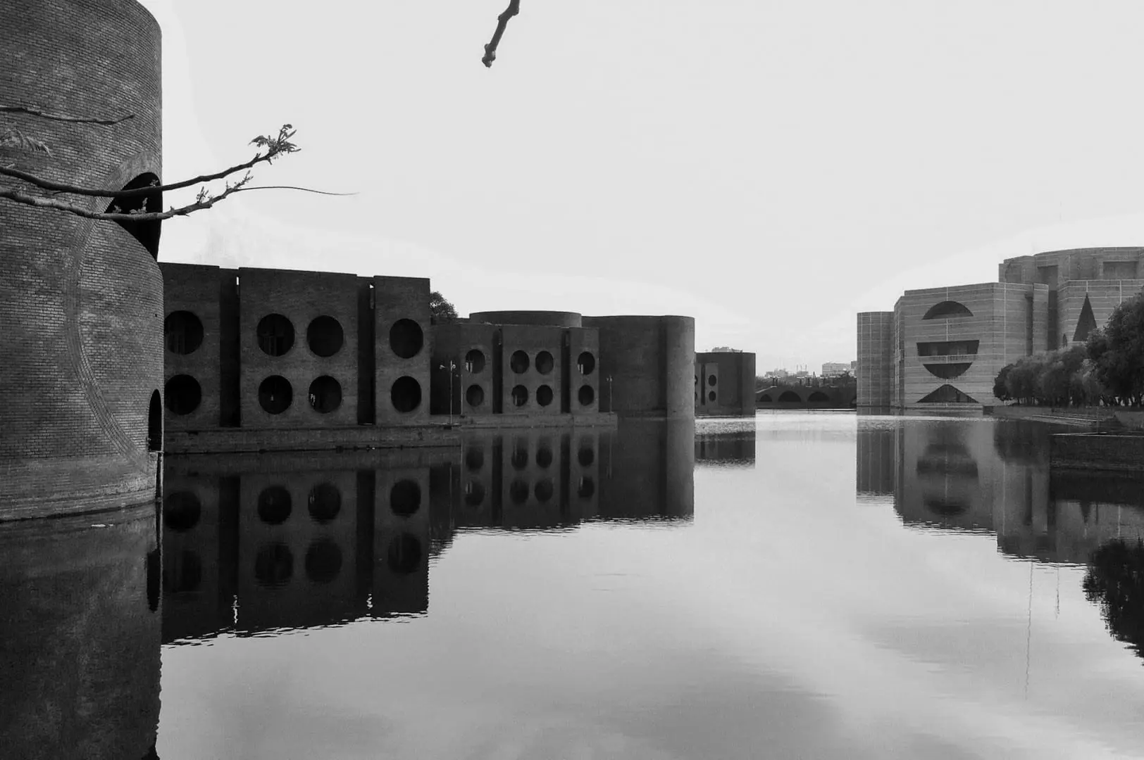 Complejo de la capital nacional El distrito del parlamento, donde se encuentra la Casa del Parlamento Nacional y la residencia oficial del Primer Ministro. Es uno de los mayores complejos legislativos del mundo y tiene una enorme superficie con jardines y lagos. El complejo es una de las célebres obras del arquitecto estadounidense Louis I Kahn, que combinó el modernismo regional con el antiguo patrimonio arquitectónico y la geografía fluvial de Bangladesh. El Parlamento está abierto a los turistas extranjeros de domingo a jueves entre las 9 y las 17 horas. Los visitantes deben llevar una copia de su pasaporte y visado y presentar una tasa de 600 taka en la recepción del Parlamento en el edificio principal.