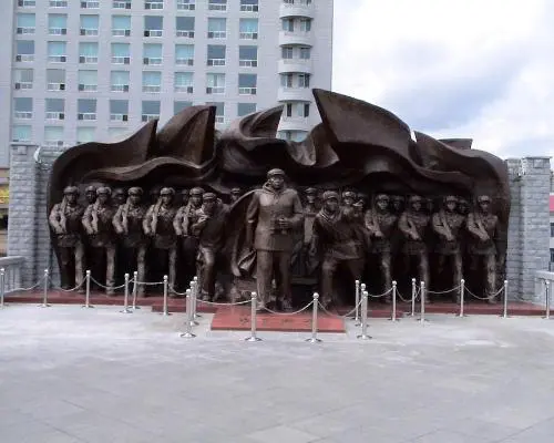 Cenotafio de la guerra para resistir la agresión de EE.UU. y ayudar a Corea. Un gran museo y monumento construido en una colina con vistas al centro de Dandong y al río Yalu. Las numerosas y bien etiquetadas exhibiciones bilingües veneran al valiente Ejército de Voluntarios Chinos, y ofrecen una perspectiva china de la historia de la guerra de Corea. A partir de diciembre de 2014, esto está cerrado por renovación.
