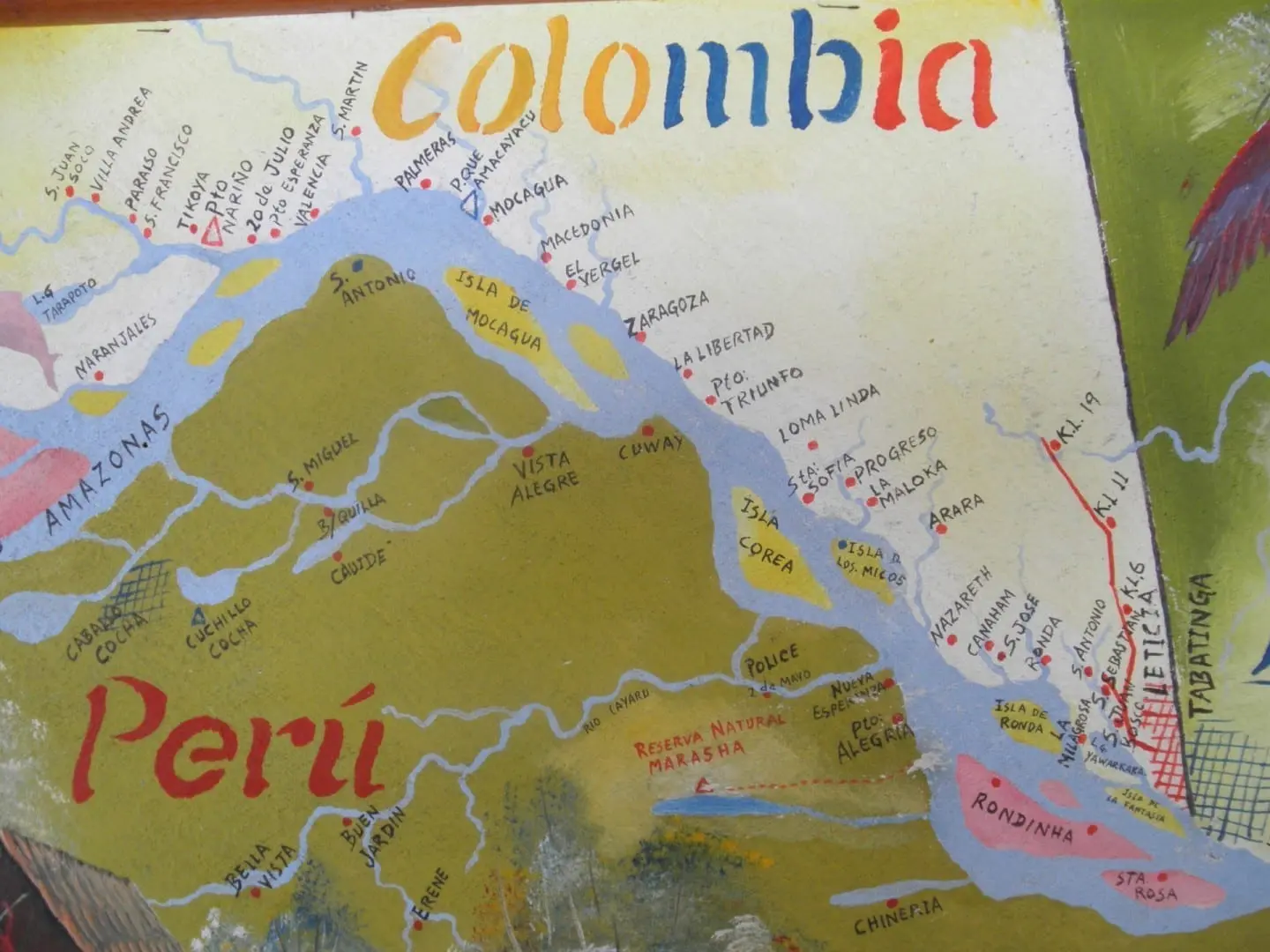 Es parte de un asentamiento contiguo que incluye Tabatinga en Brasil. En una isla cercana en el río está Santa Rosa, que es parte de Perú.