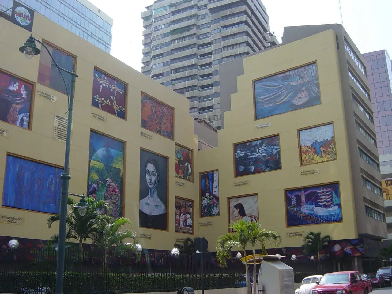 El edificio del Banco Central tiene varias pinturas gigantes en el exterior del edificio.