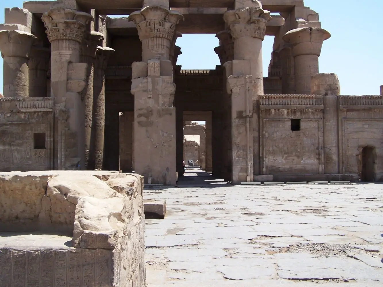 Templo de Kom Ombo. Un inusual templo dual de Sobek y Haroeris que data del reinado de Ptolomeo VI y es parte del extenso programa de construcción de ese gobernante. Anteriormente se han detectado restos faraónicos en el sitio, pero ahora quedan pocos restos de estos. El templo sufrió algunos daños en el terremoto de 1992 pero ha sido restaurado. Incluye la entrada al Museo del Cocodrilo, junto al sitio, que muestra artefactos relacionados con el culto a Sobek.