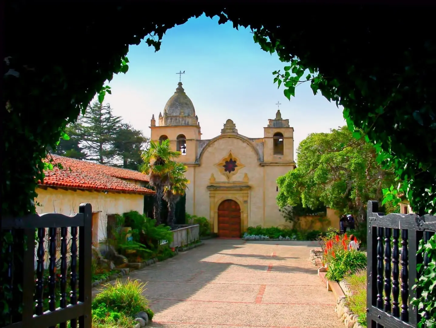 Misión San Carlos Borromeo de Carmelo. Una de las 21 misiones de California establecidas por el Padre Junípero Serra a lo largo de la costa de California. Establecida en 1771, es considerada como una de las más bellas misiones. El padre Serra, el líder de la gran misión española en California, está enterrado junto con su más fiel teniente al frente de la iglesia. Durante la vida del Padre Serra y del Padre Fermín Lasuen, fue el cuartel general del sistema de misiones desde 1771 hasta 1833. Las visitas autoguiadas te llevan a través de los edificios originales restantes que ahora tienen exposiciones, un pequeño museo y una tienda de regalos. Las misas católicas se celebran regularmente. Tengan en cuenta que la misión es una iglesia católica que funciona, así que vistan y actúen respetuosamente.