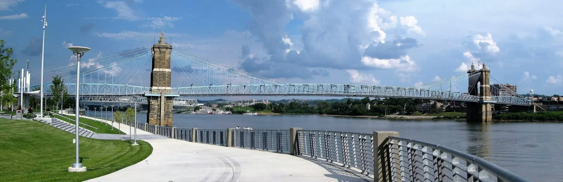 El puente colgante John A. Roebling. El Puente Colgante John A. Roebling era el puente colgante más largo del mundo con 322 m cuando los primeros peatones lo cruzaron el 1 de diciembre de 1866 – un estatus que mantuvo hasta 1883. Aún hoy en día se puede caminar por él y recorrer el distrito histórico de Riverside Drive – uno de los barrios más antiguos de la región en Covington Sirvió como prototipo para el diseño de Roebling del Puente de Brooklyn en Nueva York. Este puente apareció en la película Rain Man.