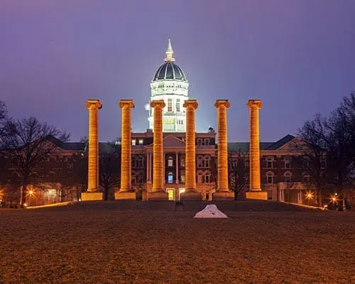 Las Columnas. Las Columnas del Cuadrante del campus de la Universidad de Missouri son el segundo punto de referencia más fotografiado en Missouri, justo detrás del Arco de San Luis.