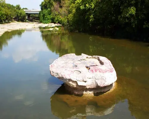 Parque del Cruce de Chisolm Trail. El Parque del Cruce de Chisholm Trail ofrece a los visitantes una escena simulada del papel histórico que desempeñó Round Rock en las campañas ganaderas de Chisholm Trail a finales del siglo XIX. Las esculturas de bronce de 4 novillos y de la mujer pionera, Hattie Cluck, y su hijo, Emmitt, fueron encargadas por la ciudad, gracias a las generosas donaciones de los residentes de Round Rock. Las esculturas representan la historia de Round Rock como un lugar de cruce a lo largo del Chisholm Trail. La famosa «roca redonda» está cerca del parque en el arroyo Brushy. El cruce de piedra caliza está marcado con surcos de los vagones que se cruzaron durante la conducción de ganado. Las placas conmemorativas cuentan la historia de la antigua Roca Redonda.