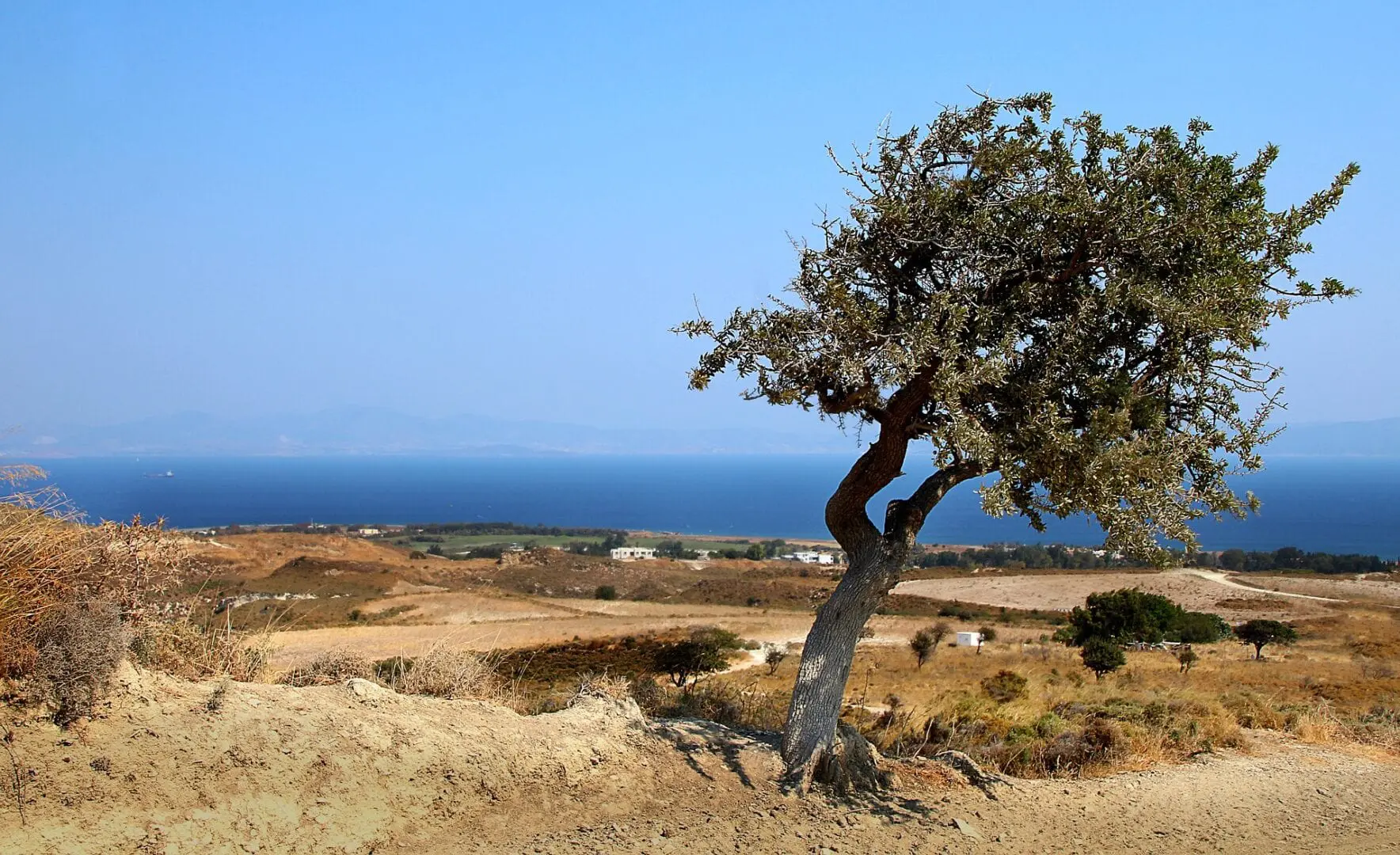 El árbol de Hipócrates. El árbol actual sólo tiene unos 500 años, pero posiblemente sea un descendiente del árbol original de hace 2400 años. Según la leyenda, Hipócrates de Kos enseñó a sus alumnos el arte de la medicina bajo el platanero.