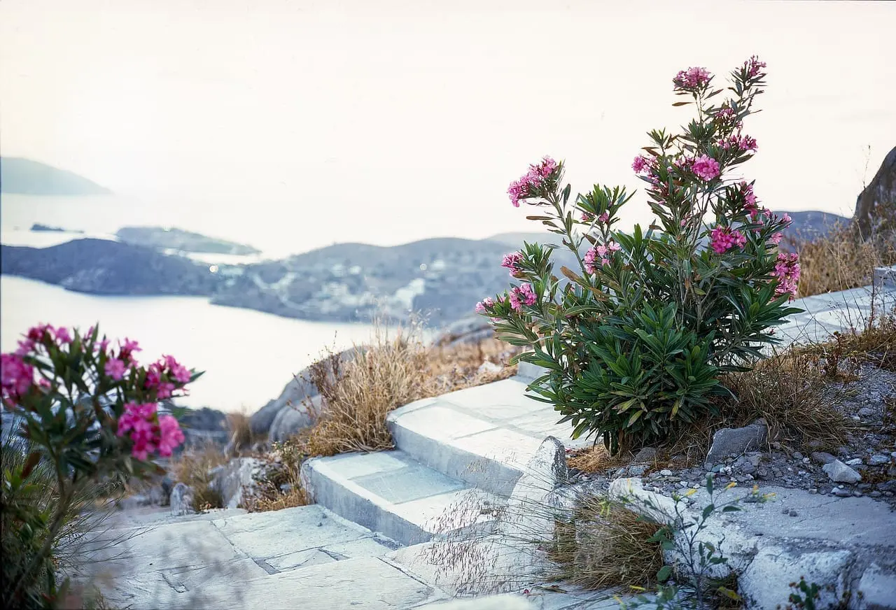 Senderismo, empezar desde Chora o Mylopotas (Ver rutas de senderismo OSM o mapa del terreno SKAI Ios). Camine por el hermoso paisaje montañoso de Ios para hacer excursiones de un día a los picos de las montañas de Profiti Ilias o Pyrgos. O haga un circuito de 4 días alrededor de la Montaña Pyrgos pasando por las playas de Klima, Manganari, Kalamos, Psathi, Ag. Theodoti así como el Monasterio de Kalamos y las ruinas de Paleocastro – Lleve siempre agua en abundancia, sombrero, protección solar, buenas botas y durante la temporada de Meltemi a finales de julio y agosto también protección contra el viento. – No hay tiendas, pero hay buenos restaurantes y alojamiento en Manganari, Psathi, Ag. Theodoti. Compruébelo con antelación para saber la disponibilidad. Tengan en cuenta que una gran área de la isla de Ios está protegida como reserva natural.