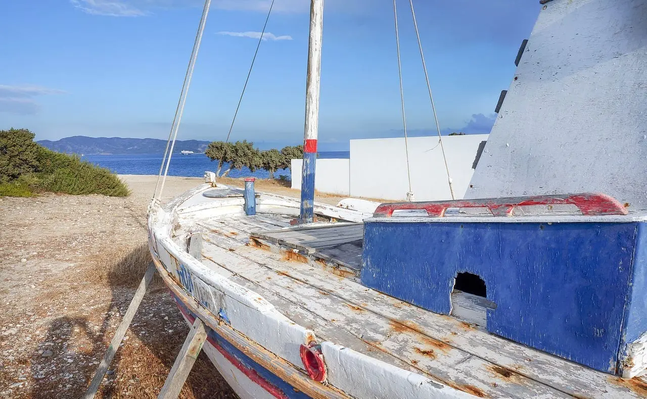 La bahía de Paliorema en Theiafes fue utilizada por una compañía local de minas de azufre hasta 1957. Hoy verán las ruinas de las instalaciones de la cantera y una playa de guijarros amarillos.