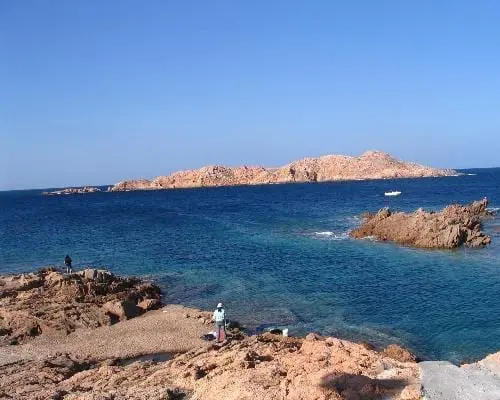 Del mar, frente al pueblo, a 500 metros de la costa, emerge la isla de Isola Rossa, de la que el pueblo toma su nombre.