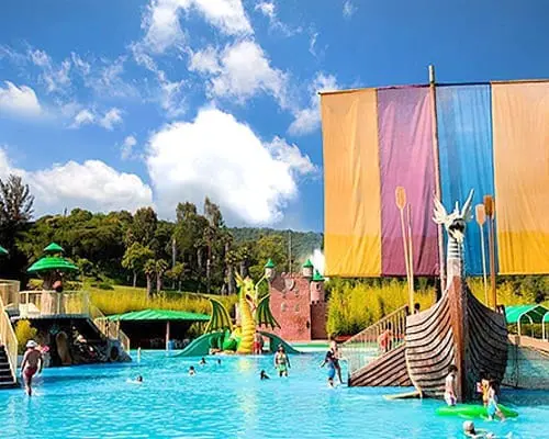 Parque Acuatico Ixtapan Parque acuático con balneario de aguas termales, un área para niños y un área de paseo acuático «extremo».