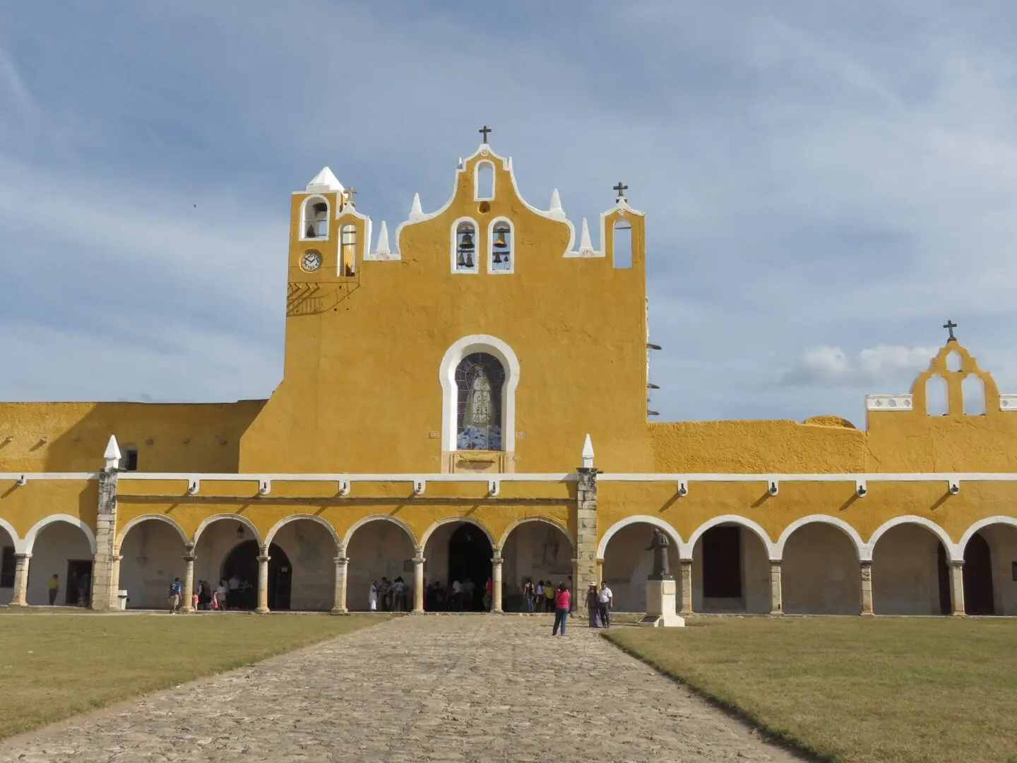 Izamal es una pequeña ciudad de Yucatán, a unos 70 km al este de la capital, Mérida. Cuando los españoles conquistaron Yucatán, siguieron su práctica habitual de construir una nueva ciudad española sobre la ciudad maya, pero en Izamal algunas de las estructuras mayas eran tan masivas que los españoles se conformaron con poner iglesias y conventos encima de ellas en lugar de demolerlas completamente.