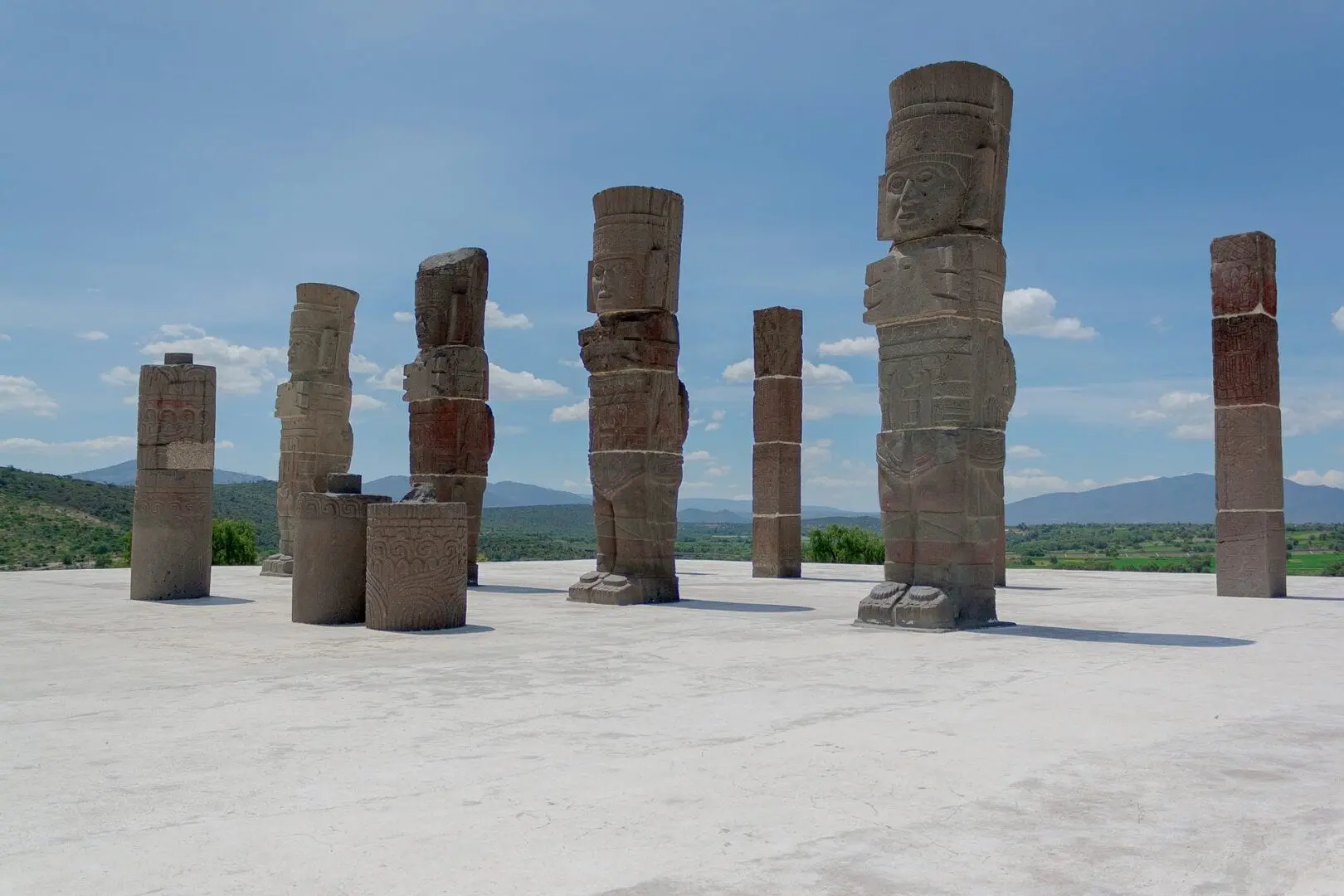 Las famosas columnas que se asemejan a los guerreros aztecas y las ruinas de la pirámide son la parte más visitada de las ruinas.