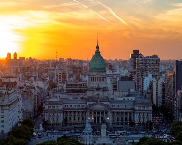 Buenos Aires, capital de Argentina, es una gran urbe de carácter cosmopolita que se ha convertido en una de las ciudades más importantes de Latinoamérica. Buenos Aires es una ciudad moderna que ha sabido conservar sus antiguas tradiciones y algunos de sus entrañables rincones, componiendo un lugar capaz de sorprender y enamorar a sus visitantes. Al igual que el mejor de los tangos de Carlos Gardel, Buenos Aires es una ciudad apasionada y apasionante, un destino alegre y colorido en el que siempre hay algo que ver, hacer, o saborear. Al igual que ocurre con su deliciosa gastronomía, Buenos Aires es una ciudad para degustarla sin prisas, deleitándose mientras se percibe cada uno de sus llamativos matices. Resulta fascinante introducirse en el ambiente de la ciudad mientras se disfruta de su excelente oferta cultural, la personalidad de sus coloridos barrios, el encanto de sus gentes y el sabor de sus ricos platos, mientras la alegría de los viejos locales de tango envuelven la ciudad.