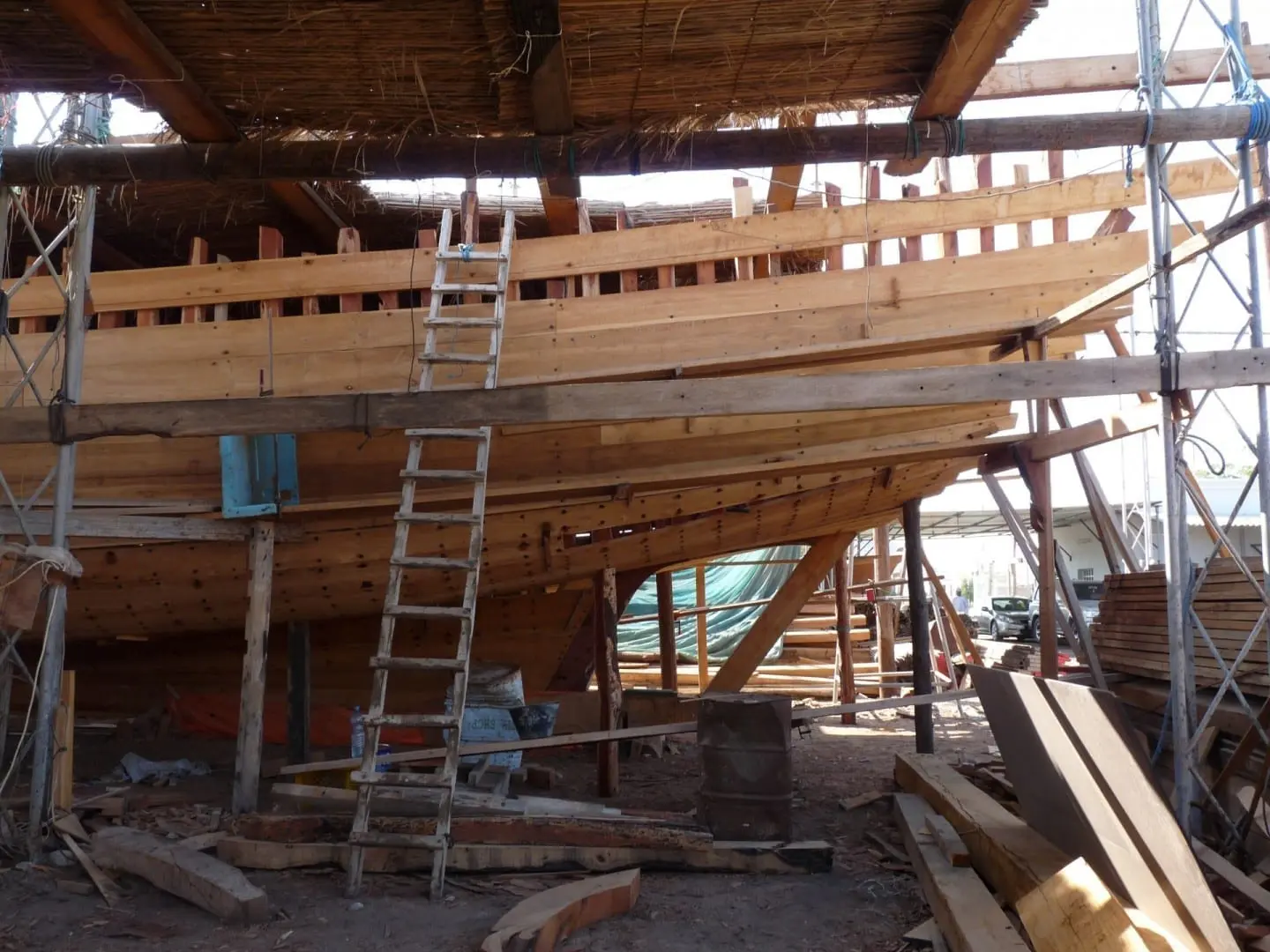 El astillero Dhow. Sur es donde los auténticos dhows se siguen construyendo de forma tradicional. NOTA: los lugareños no los llaman «dhows» sino más bien safeena (barco) o suh-fin (barcos). Si dices «dhow», se quedarán perplejos.