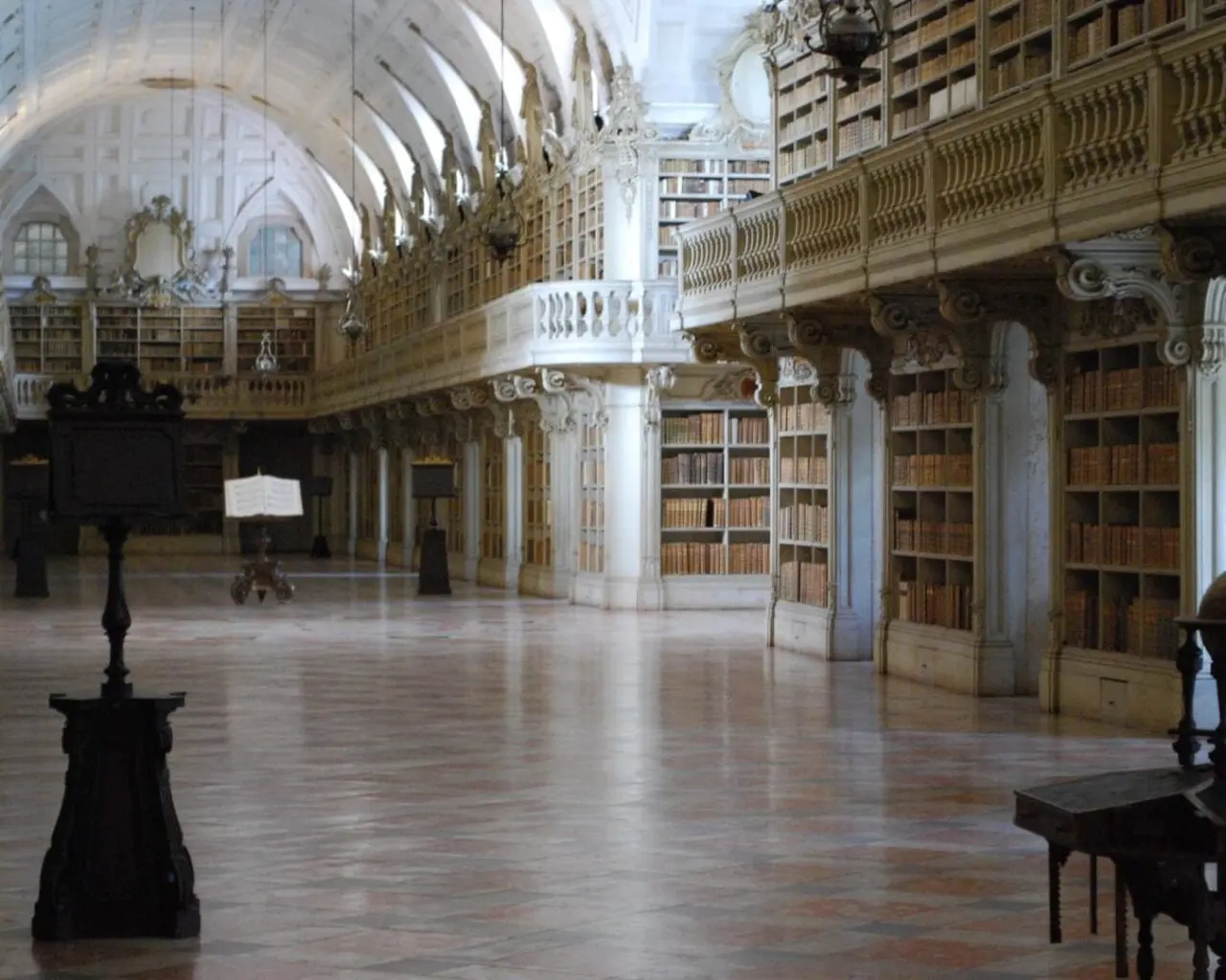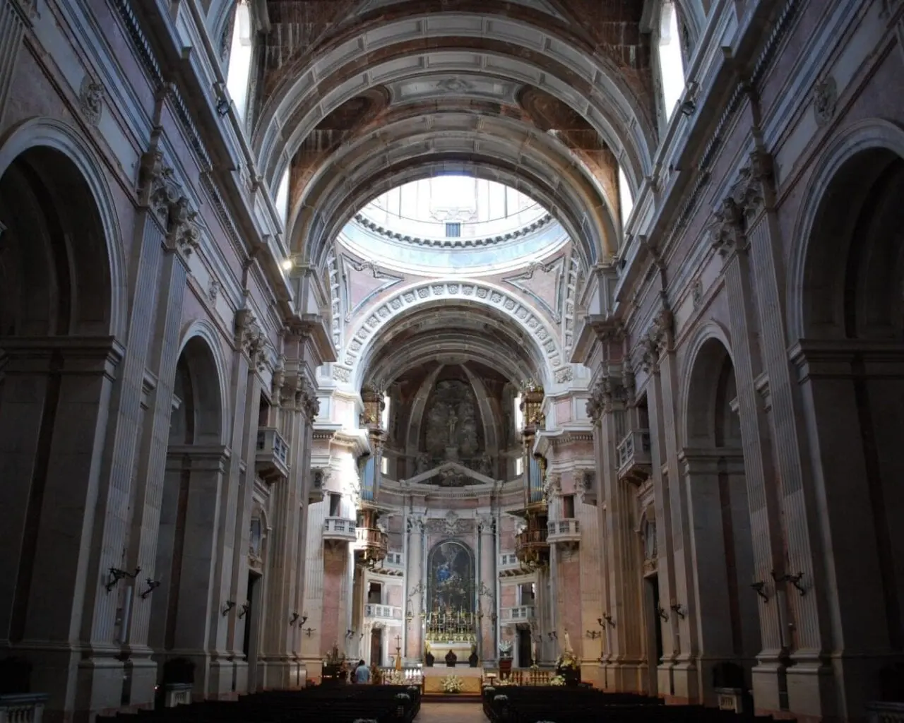 Convento de Mafra. El Palacio Nacional de Mafra es probablemente el monumento barroco más llamativo que se encuentra en Portugal, su construcción simboliza el dominio absoluto de D. João V. El palacio tiene unas 1.200 habitaciones de las cuales la más impresionante es la Biblioteca, que data del siglo XVIII y contiene unos 36.000 libros y manuscritos. Además está el Convento, una parte importante y significativa del patrimonio religioso de Portugal. Sin embargo, lo más impresionante del recinto del Palacio es la Basílica, considerada una obra maestra de la arquitectura barroca y famosa por su Carillón, famoso en todo el mundo por el tamaño y la belleza de su mecanismo.