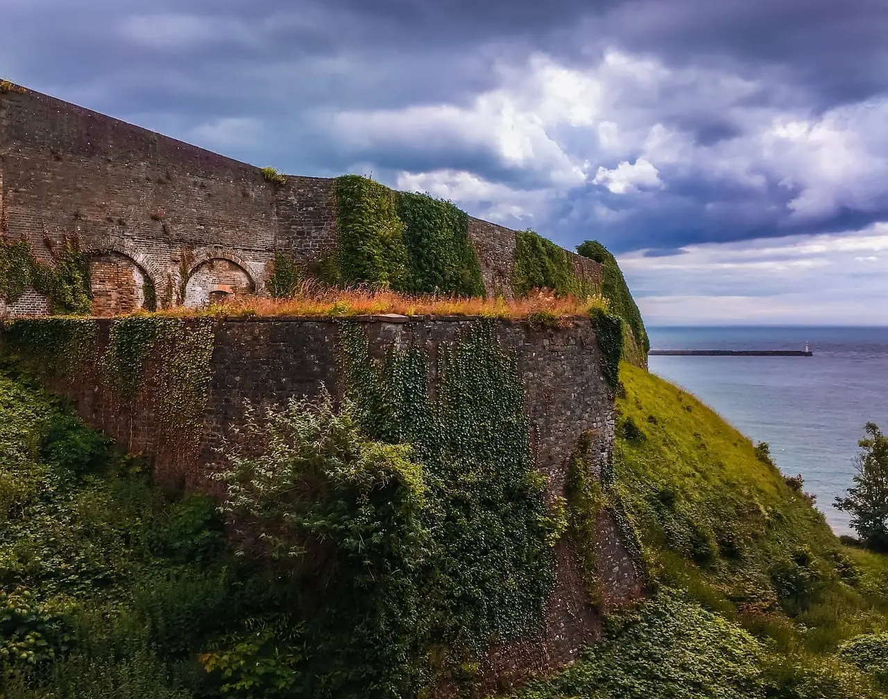 Dover Castle. Conocido como la «Llave de Inglaterra», el castillo tiene 2.000 años de historia dentro de sus muros, incluyendo un faro romano, una iglesia sajona y una torre del homenaje normanda. Bajo tierra se han excavado una serie de casamatas y túneles en la tiza. Desde estos túneles se planeó la Operación Dinamo (la evacuación de Dunkerque).