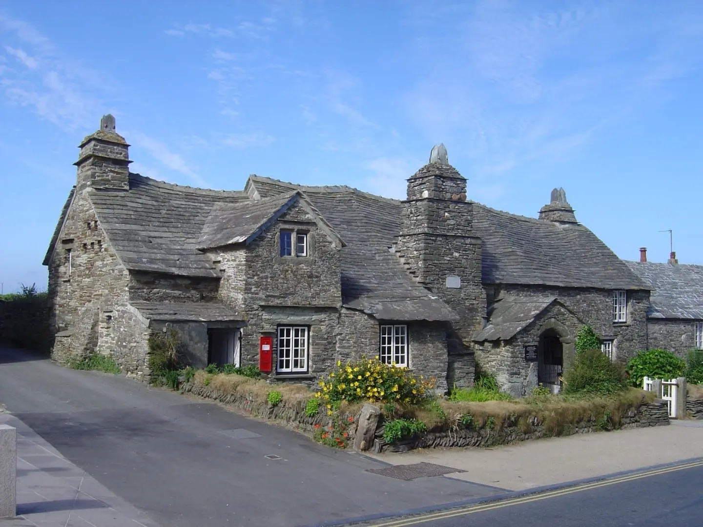 Tintagel Old Post Office. Lugar del National Trust. La granja del siglo XIV con un famoso techo de pizarra ondulada y más de 600 años de historia.