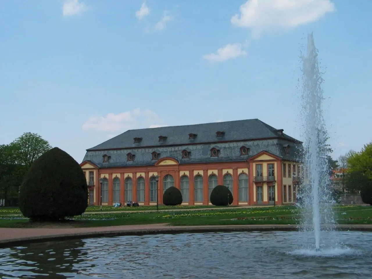 Orangerie. En el sur de Darmstadt, en el corazón de Bessungen, hay un bonito jardín barroco con varias fuentes. En verano la gente juega al boule o se relaja en la hierba.